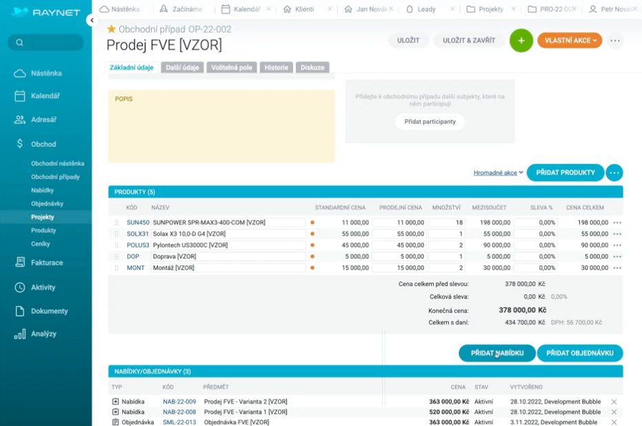 V roce 2022 a 2023 jsme provedli úspěšnou implementaci RAYNET CRM do tří desítek společností v oboru prodeje fotovoltaických elektráren.